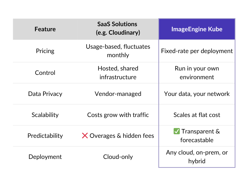 Same advanced image optimization—without the SaaS volatility.